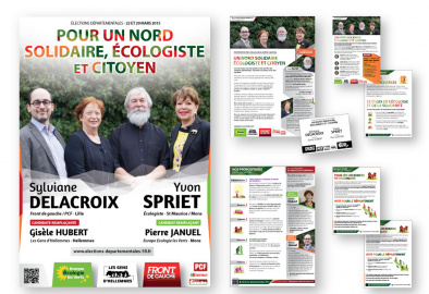 Création d’outils de campagne dans le cadre des élections cantonales de 2011 pour les candidats du Front de Gauche Hugo Vandamme et Anne-Laure Guerin.