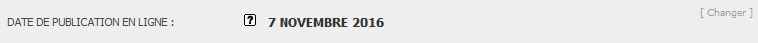 Lorsqu’un article est publié, la date du jour est automatiquement associée à l’article. Dans l’encart date de publication en ligne, il est possible de changer cette date en cliquant sur le bouton changer, et ainsi modifier l’ordre d’apparition des articles.
