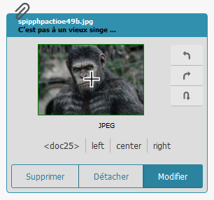 Cliquer sur left, center ou right permettra respectivement d’insérer une image alignée à gauche, centrée, ou alignée à droite.