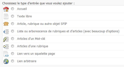 Texte libre permet d’ajouter une entrée sans aucun lien. Il s’agira d’un texte apparaissant à titre indicatif.
