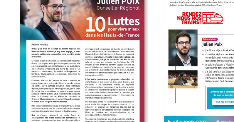 Nous avons accompagné le conseiller régional des Hauts-de-France Julien Poix dans la conception de son bilan de mi-mandat.