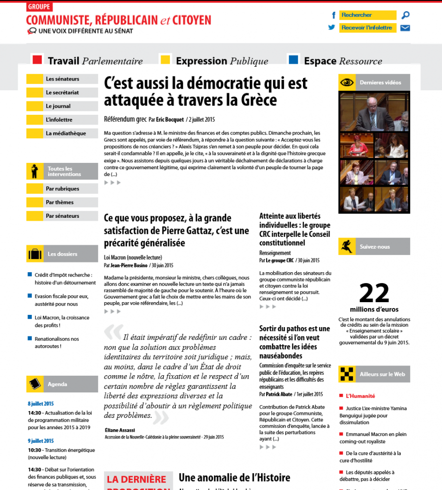 Nous avons refondu le site du groupe Communiste, républicain et citoyen ainsi que l’ensemble des 16 sites des sénateurs.