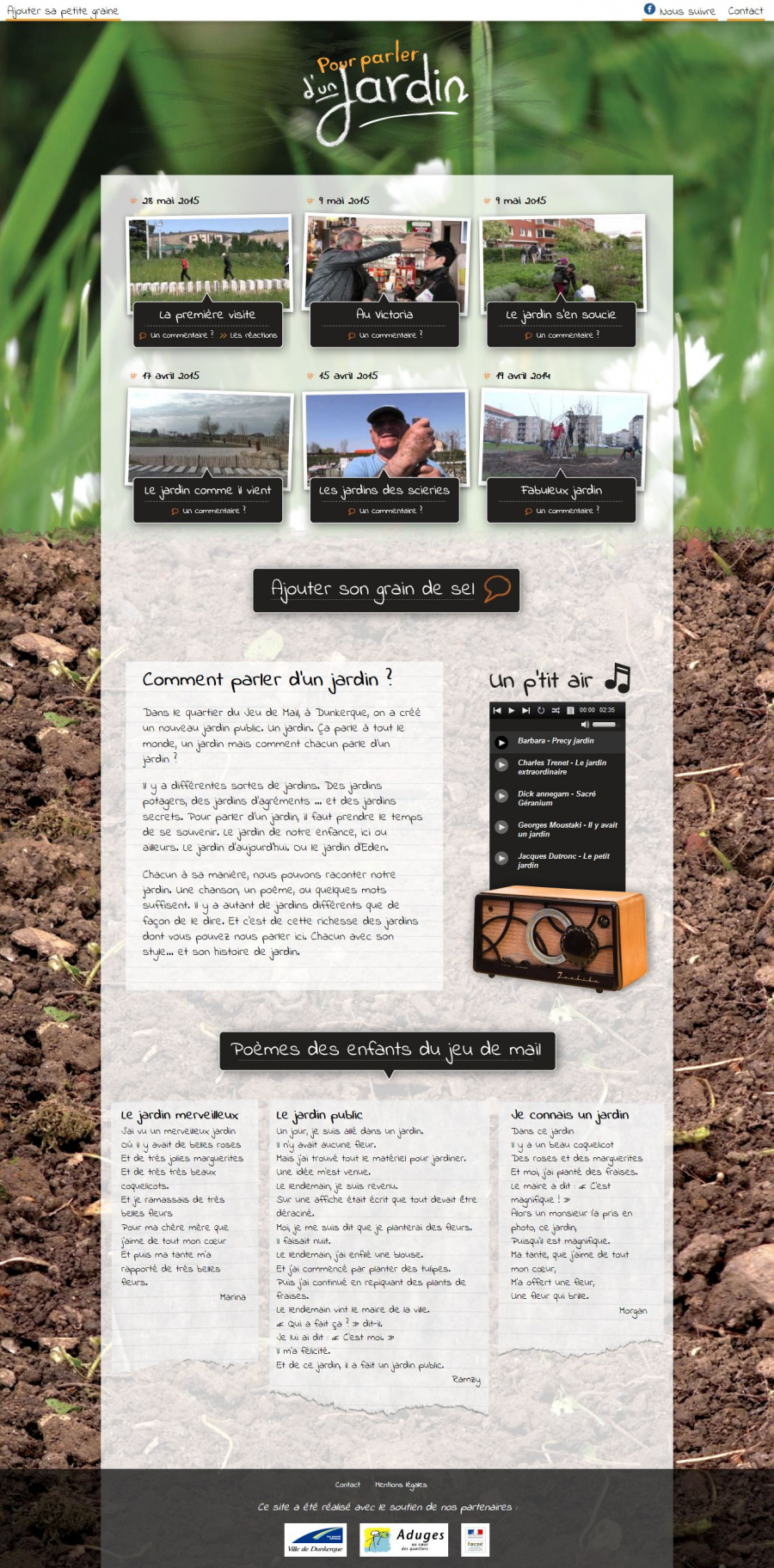 En plus des vidéos documentaire, le site donne la possibilité de lire les poèmes écrits par les enfants du quartier et d’écouter une playlist sur le thème des jardins.