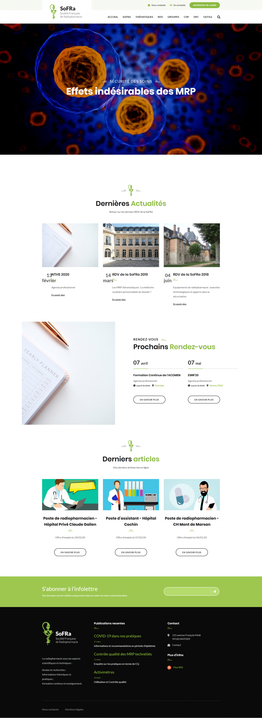 Nous avons maquetté et développé le site de l’association SoFRa Radiopharmacie qui rassemble la communauté scientifique française dans le domaine de la radiopharmacie.